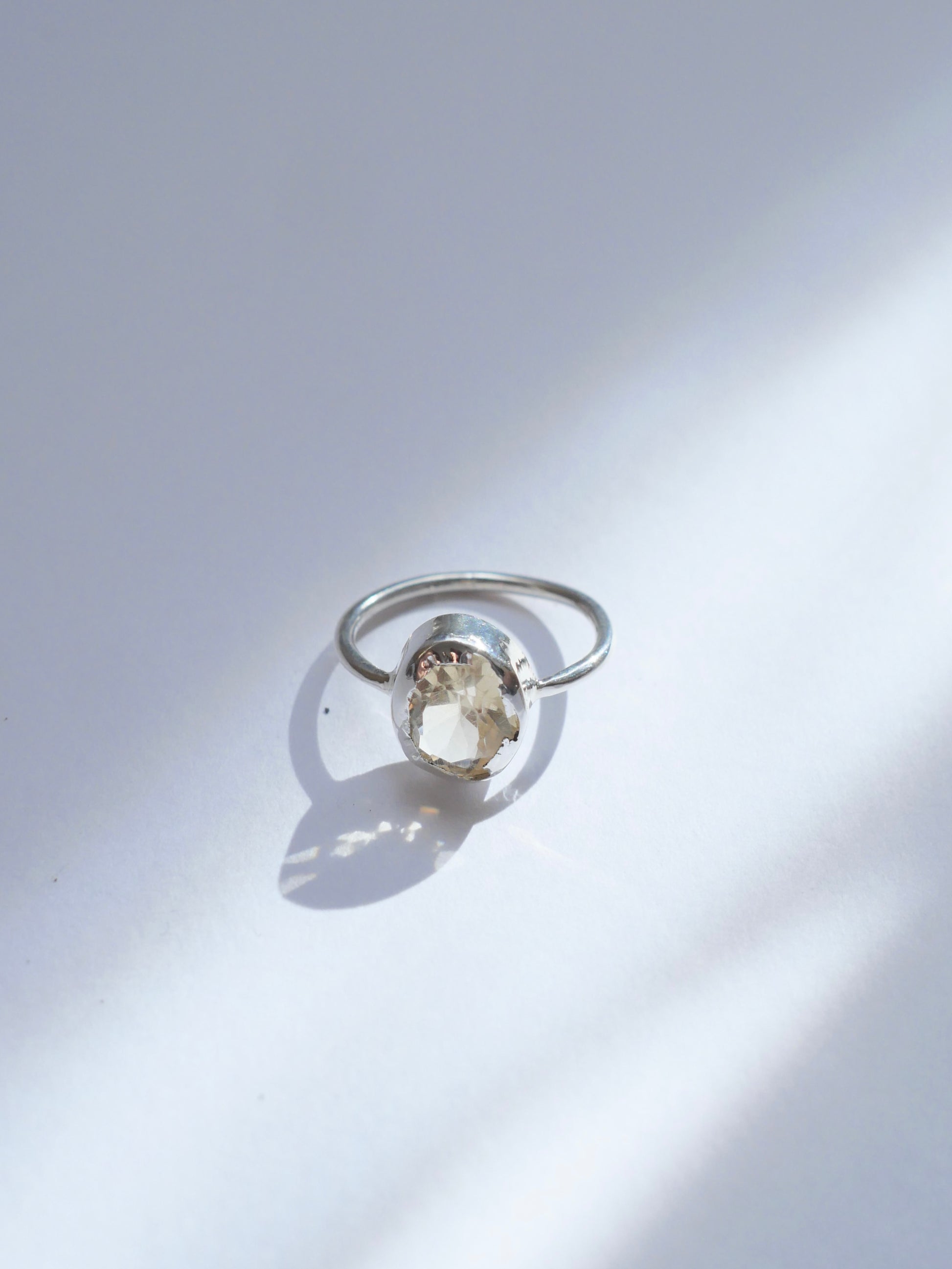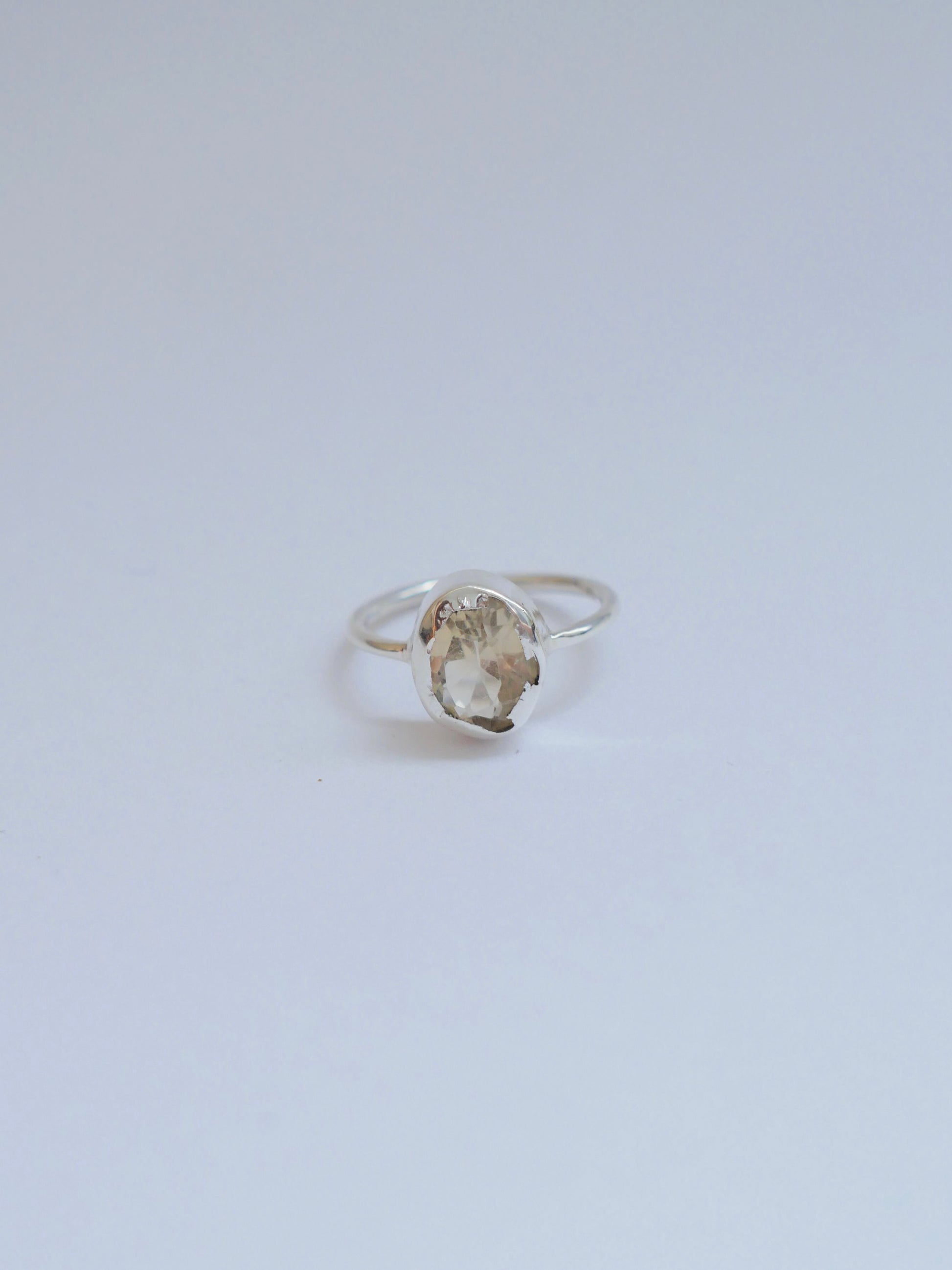 Anillo plata ley 9.25 hecho a mano con citrino de 2.5 quilates, talla 5. Acabado destruido irregular. Pieza única