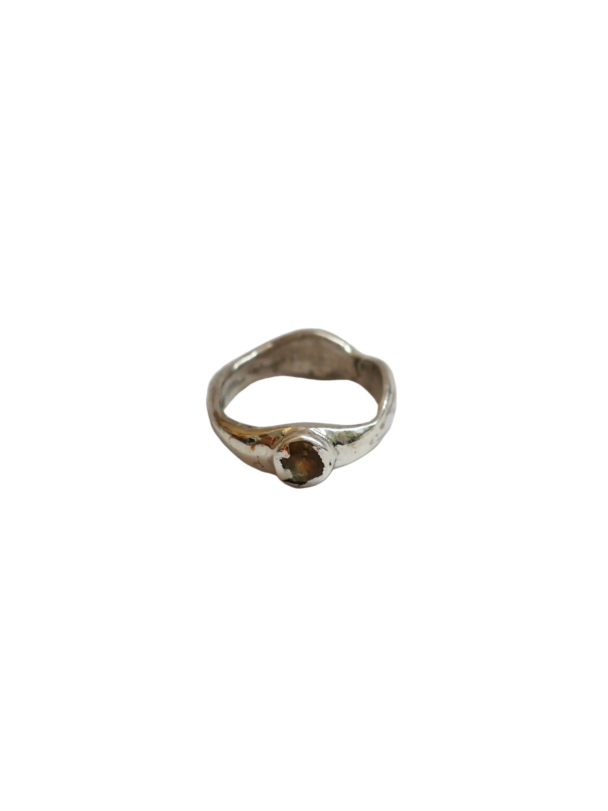 Anillo de plata ley 925 hecho con la técnica de cera perdida con citrino de .5 quilates al centro. Pieza única, talla 5