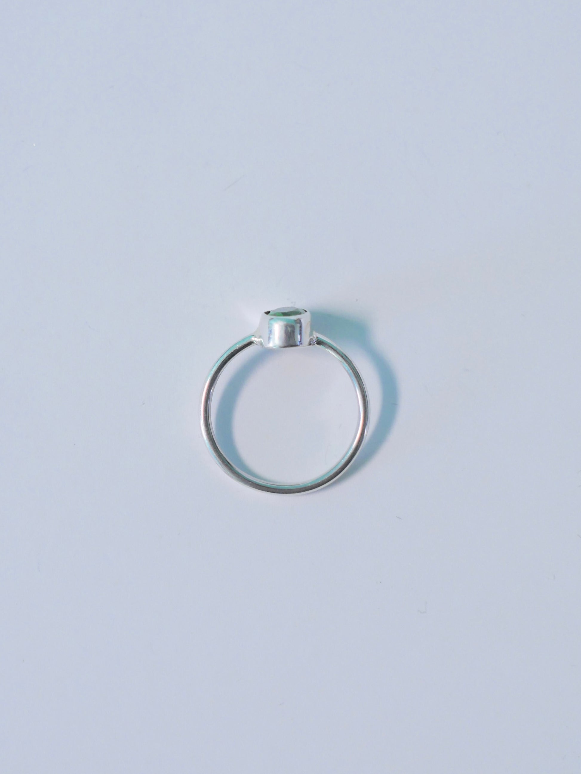 Anillo de plata con circonia verde al centro. Hecho a mano en México.