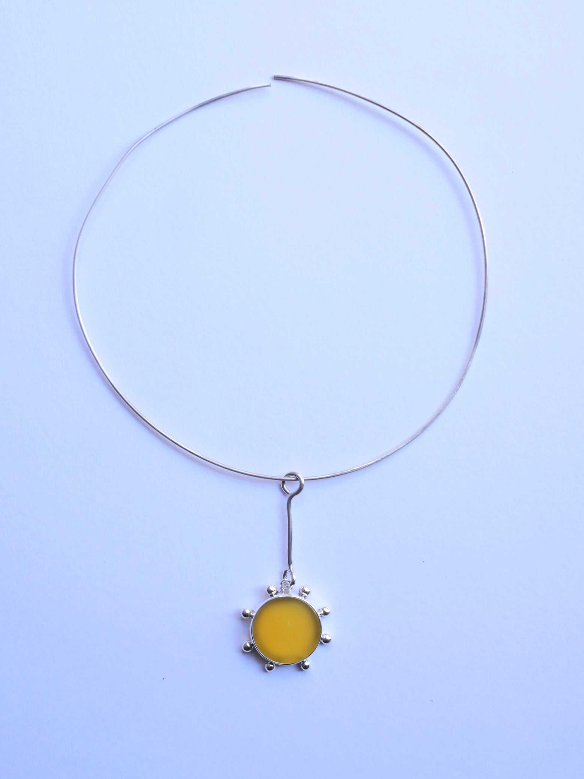 Collar de plata hecho a mano con colgante de ágata amarilla con detalles de plata alrededor. Pieza única
