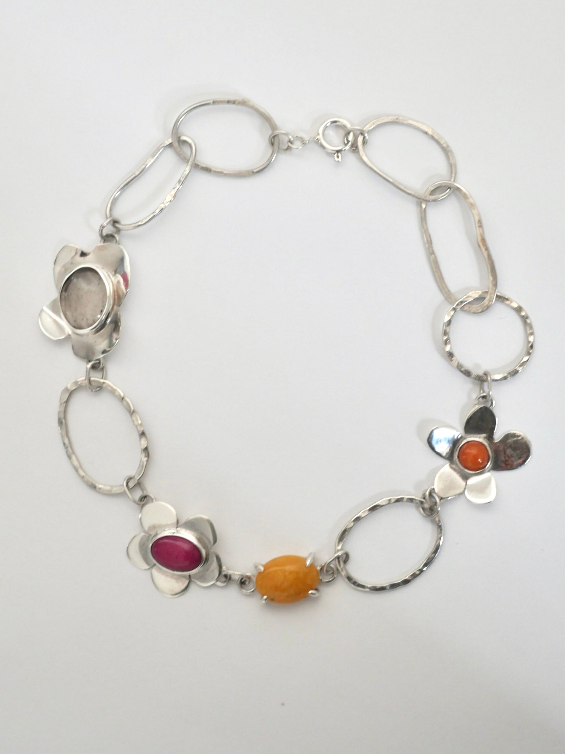 Collar de plata hecho a mano con ágatas de colores y eslabones irregulares. Pieza única.